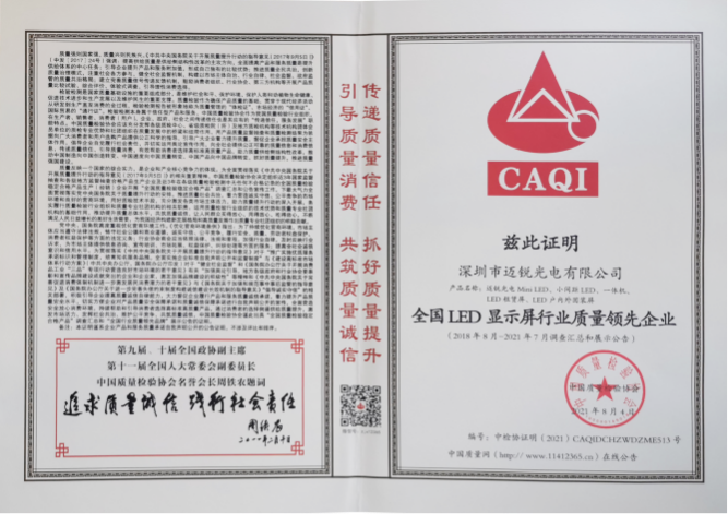 又是一年“质量月”即将来临,在中国质量检验协会组织的2021年全国“质量月”之“企业质量诚信倡议”专题活动中,星空电竞光电经过中国质量检验协会的公平、公正、公开的评选,一举斩获“全国质量检验信誉保障产品”“全国质量诚信先进企业”“全国质量检验稳定合格产品”“全国LED显示屏行业质量领先企业”四项殊荣。